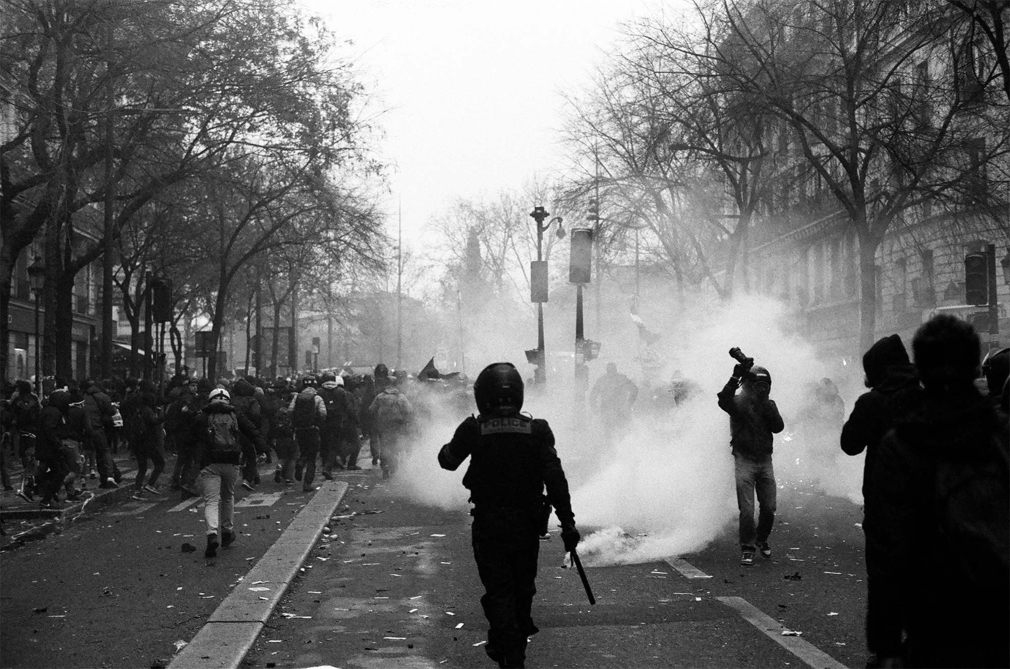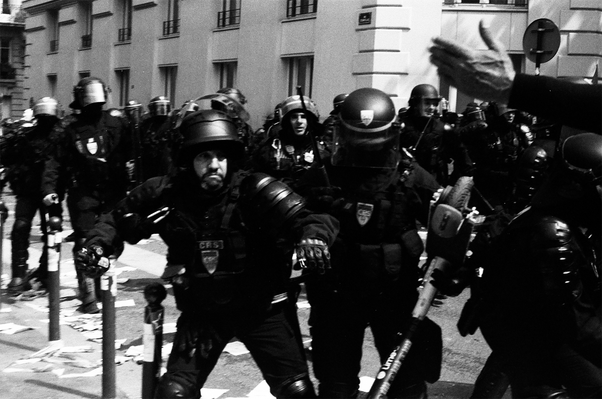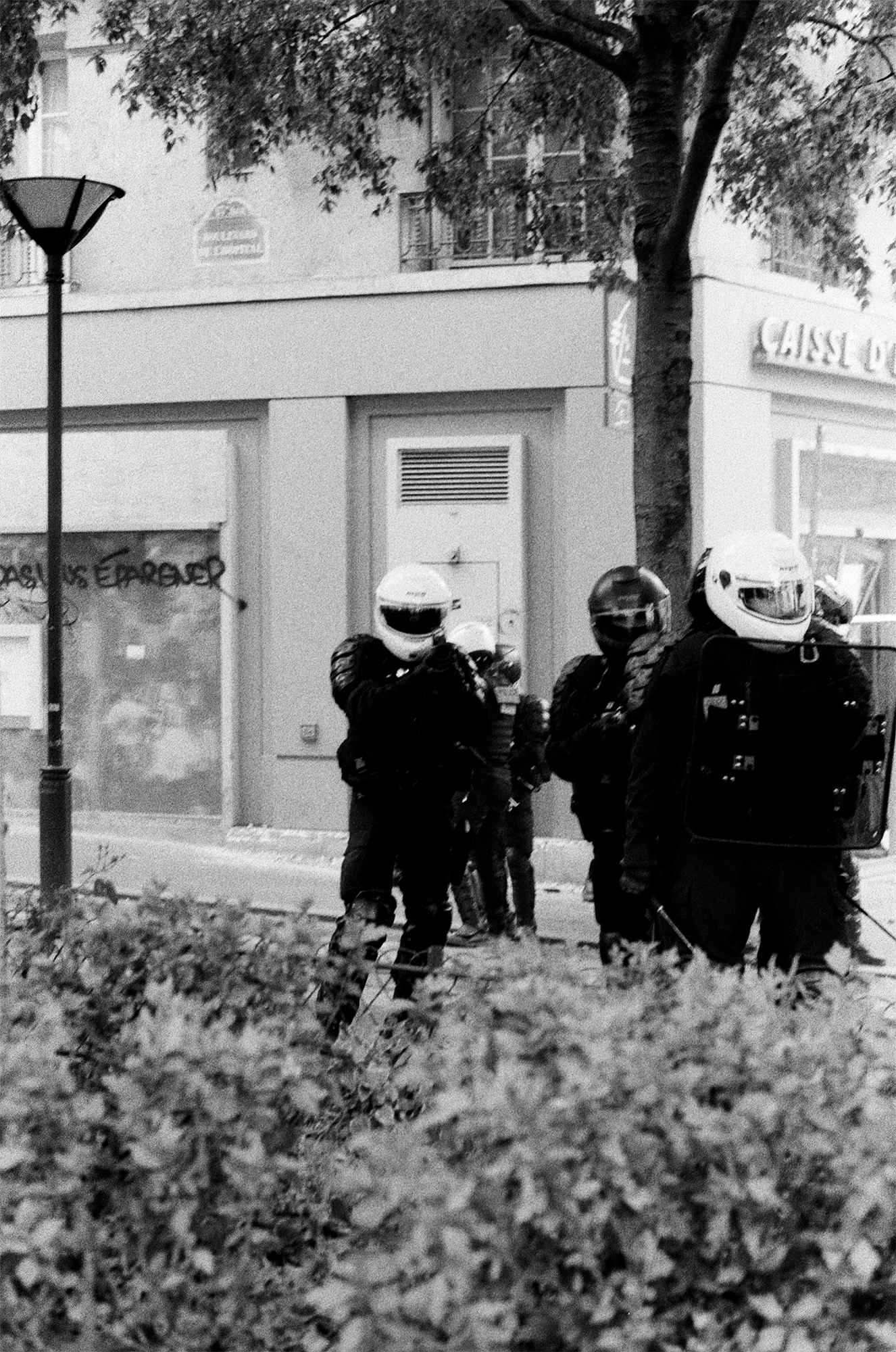 J'ai constitué cette série à partir de photograhies argentiques prises lors de mouvements sociaux en 2019 durant lesquels j'ai décidé de saisir la présence et l'action des forces de l'ordre.