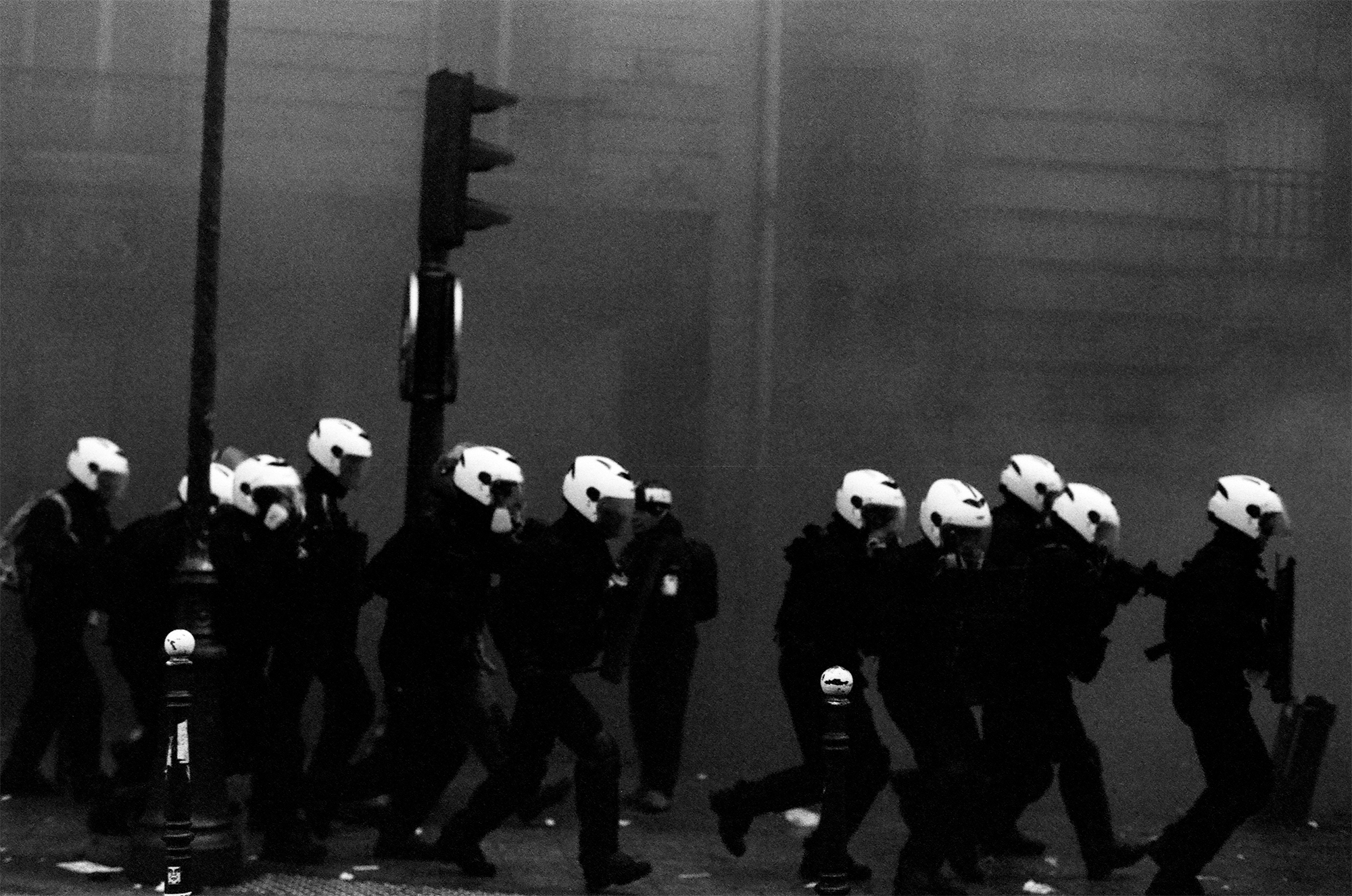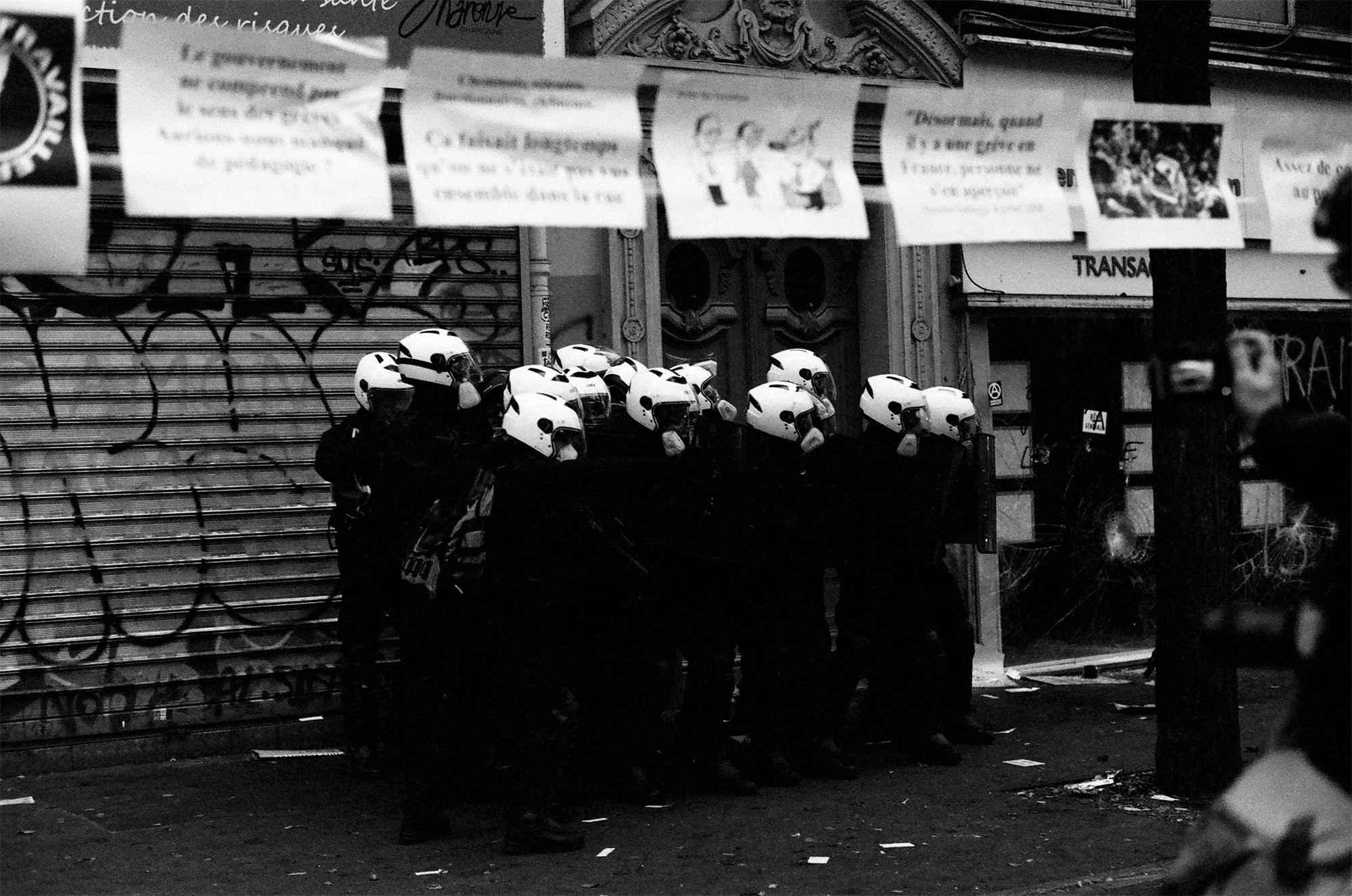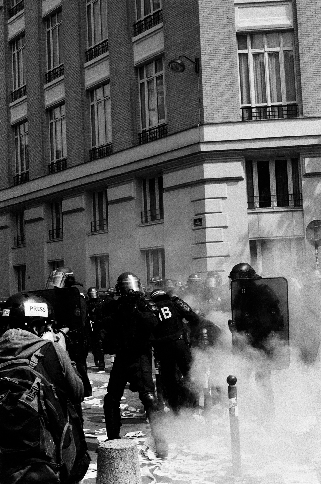 J'ai constitué cette série à partir de photograhies argentiques prises lors de mouvements sociaux en 2019 durant lesquels j'ai décidé de saisir la présence et l'action des forces de l'ordre.